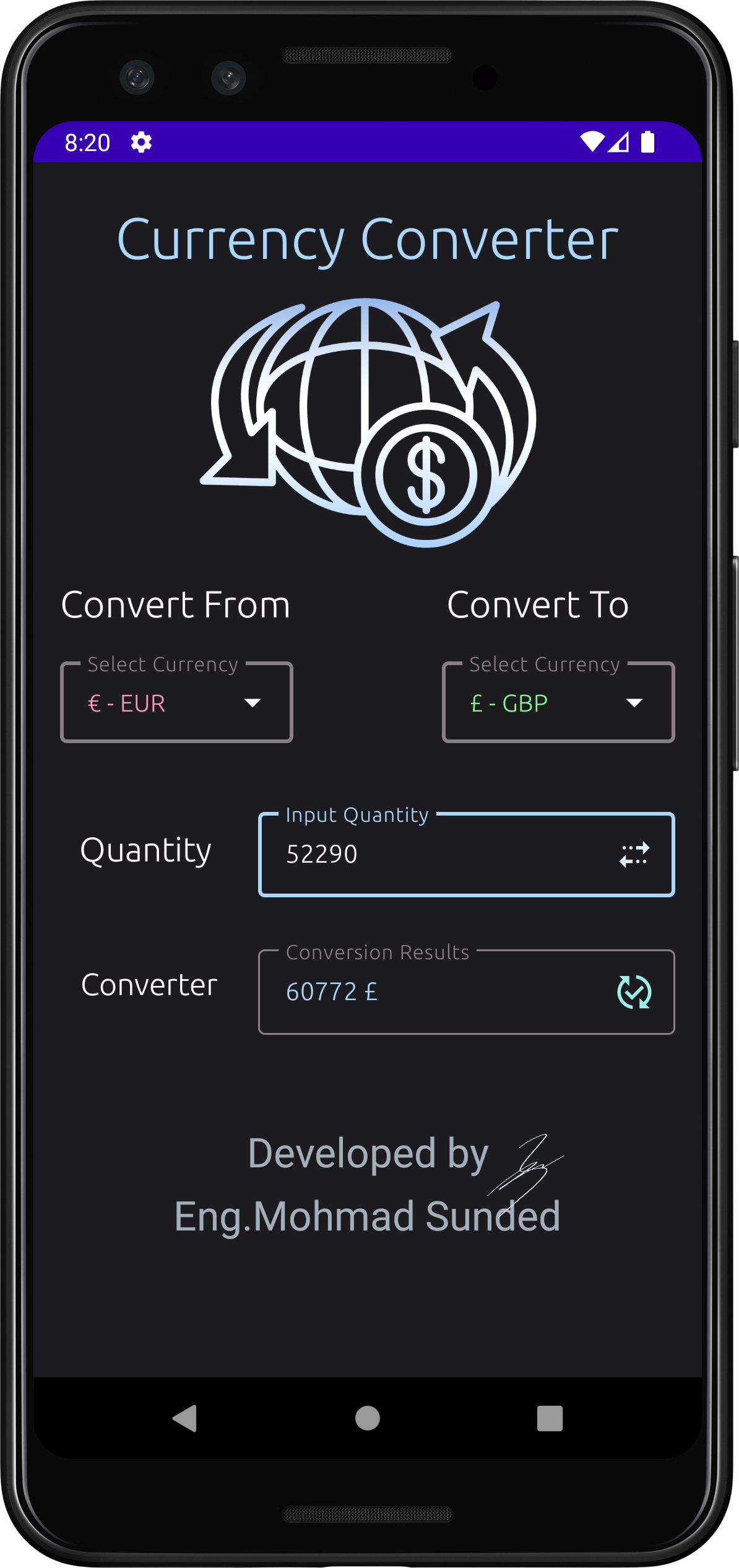 This application converts various types of currencies. It relies on global exchange updates to perform currency conversion calculations.